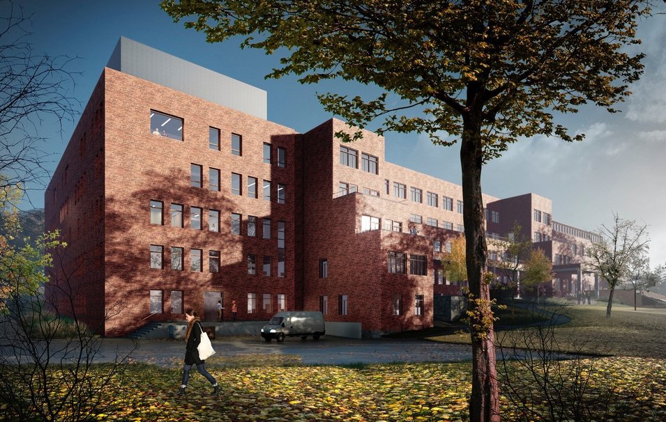 Prosjektet har oppstart i mai 2018. Nybygget oppføres i plasstøpt betong, med teglfasade tilpasset eksisterende vernet bygning. I tillegg til hver etasjes hovedfunksjoner skal Peab bygge oppholdsrom, desinfeksjonsrom, medisinrom, arbeidsstasjoner, kontorer, møte/pauserom og venteområder.