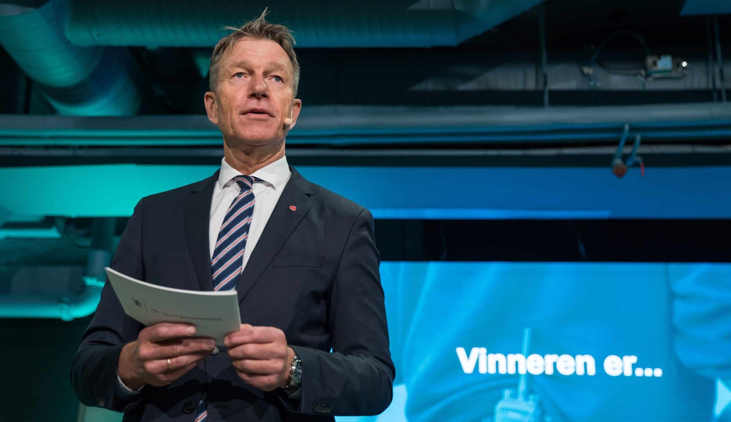 Energiminister Terje Aasland (Ap) deler ut prisen "Årets grønne driftsteam" under Grønn driftskonferanse